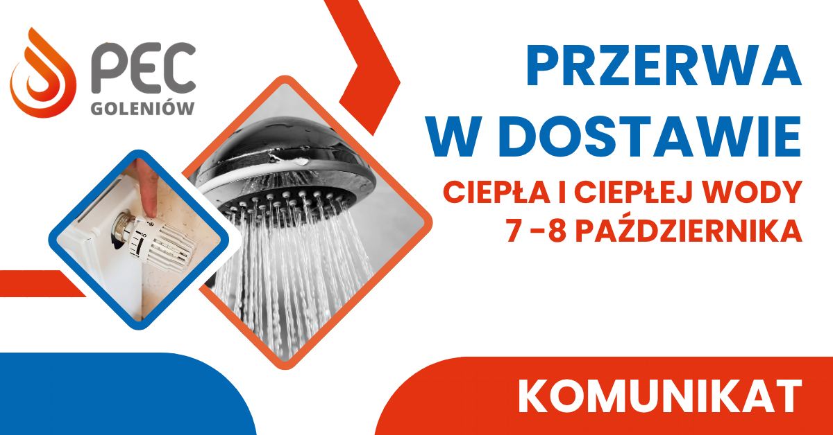 Jak informuje Przedsiębiorstwo Energetyki Cieplnej Sp. z o.o. w Goleniowie w dniach 7 października 2025 roku od godziny 7.00 do dnia 8 października 2025 roku do godziny 24.00 wyłączona zostanie część sieci ciepłowniczej na terenie miasta Goleniów. Nie będzie ani ciepłej wody ani centralnego ogrzewania. Przyczyną wyłączenia są przeprowadzane prace remontowe.