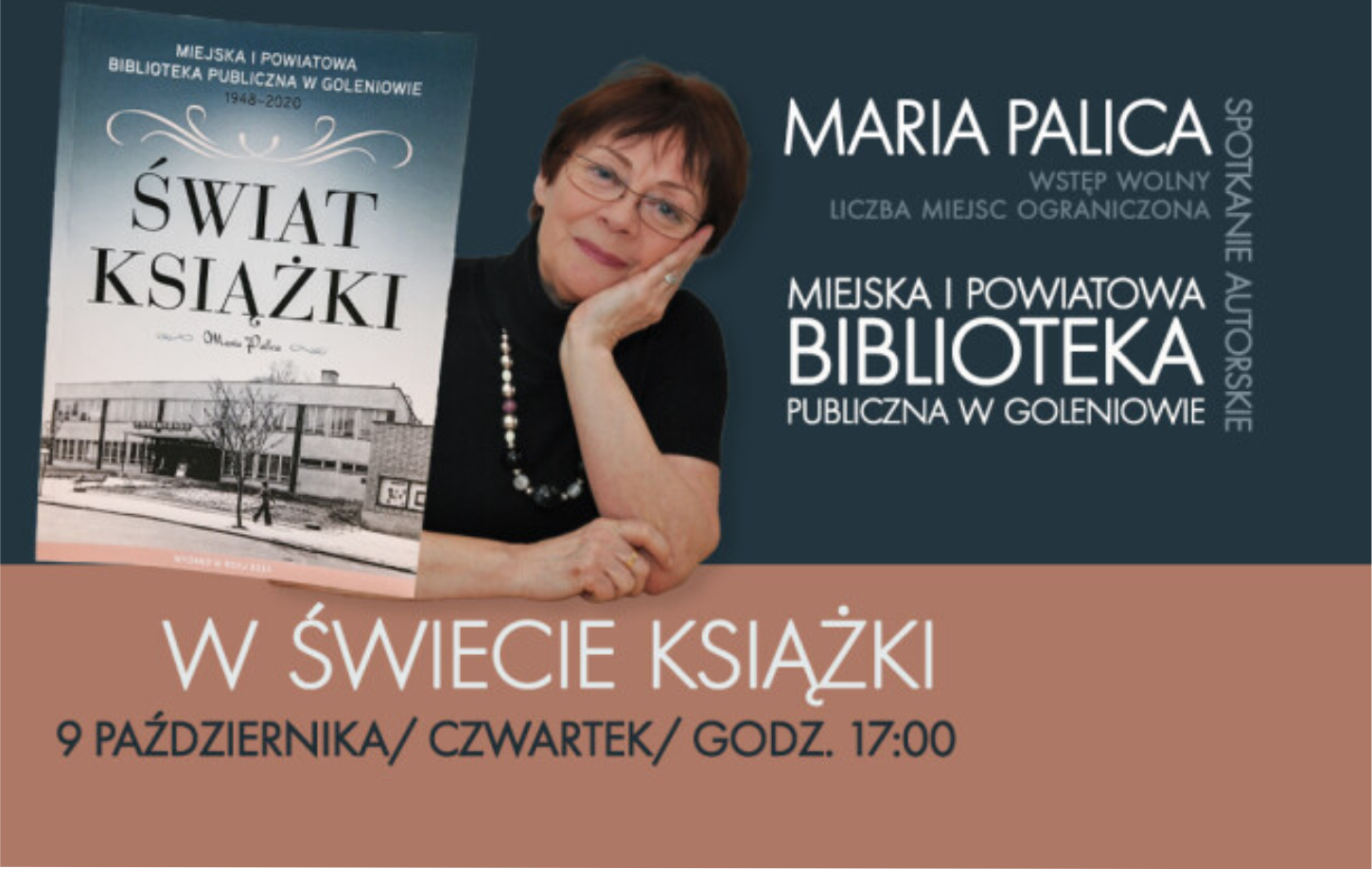 Miejska i Powiatowa Biblioteka Publiczna w Goleniowie zaprasza na wyjątkowe spotkanie autorskie z Marią Palicą (czwartek 9 października 2025, godz. 17:00), autorką książki Świat książki, poświęconej dziejom naszej goleniowskiej biblioteki. To doskonała okazja, by wspólnie odbyć sentymentalną podróż przez przeszłość placówki, przypomnieć ważne wydarzenia i zobaczyć, jak zmieniało się życie kulturalne Goleniowa na przestrzeni lat.