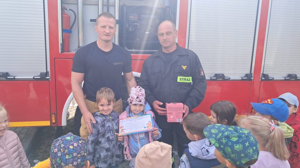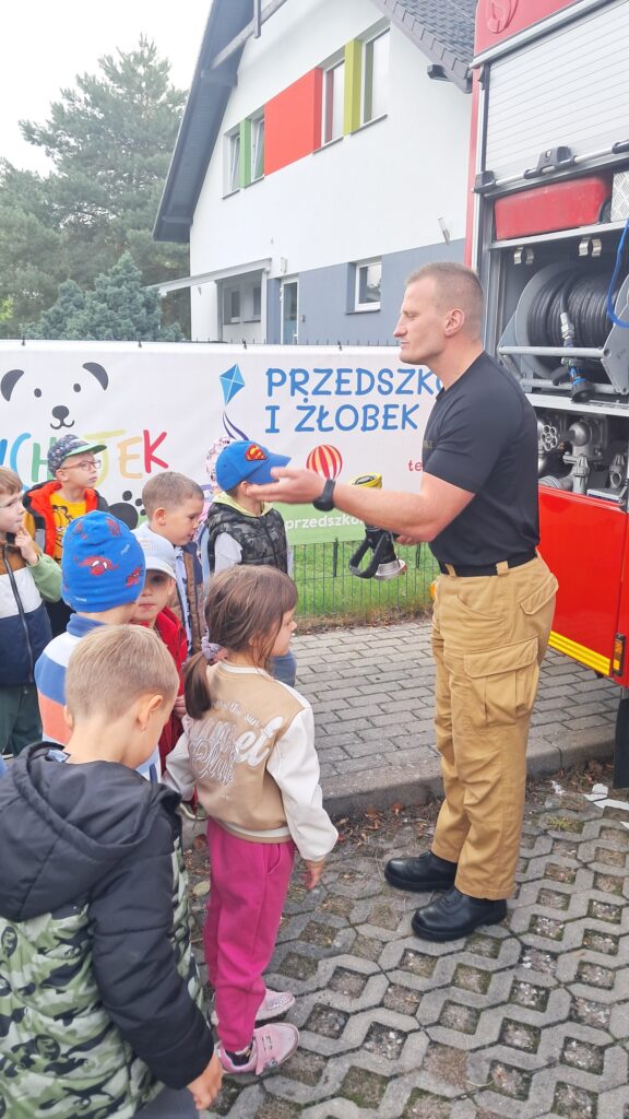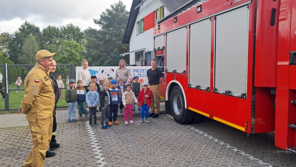 W piątek 17 września przedszkolaki z Niepublicznego Przedszkola „Puchatek” na Osiedlu Helenów gościły strażaków, którzy w ciekawy i przystępny sposób opowiadali o swojej pracy oraz pokazali wyposażenie wozu strażackiego. Dzieci miały okazję zajrzeć do kabiny, obejrzeć węże, hełmy i elementy aparatu oddechowego oraz dowiedzieć się, jak wygląda codzienna służba ratowników.