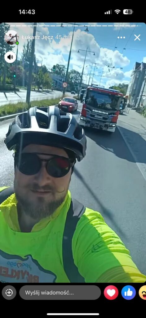 Łukasz Jęcz jest strażakiem z Zielonej Góry. Wyruszył na wyprawę dookoła Polski „bicyklem”, która szerokim echem odbija się w mediach społecznościowych i nawet tych ogólnopolskich. Jedzie dla swojej chorej córeczki Emilki, już tak prawie miesiąc. 5 października planuje zakończyć swoją wyprawę w Zielonej Górze. Wspierają go w akcji koledzy z pracy znajomi, rodzina i wszyscy ludzie dobrej woli. Jutro 3 października około 8 rano wyruszy w kolejny etap ze Stepnicy do Pyrzyc i w okolicach 8.30-9.00 pojawi się w Goleniowie!