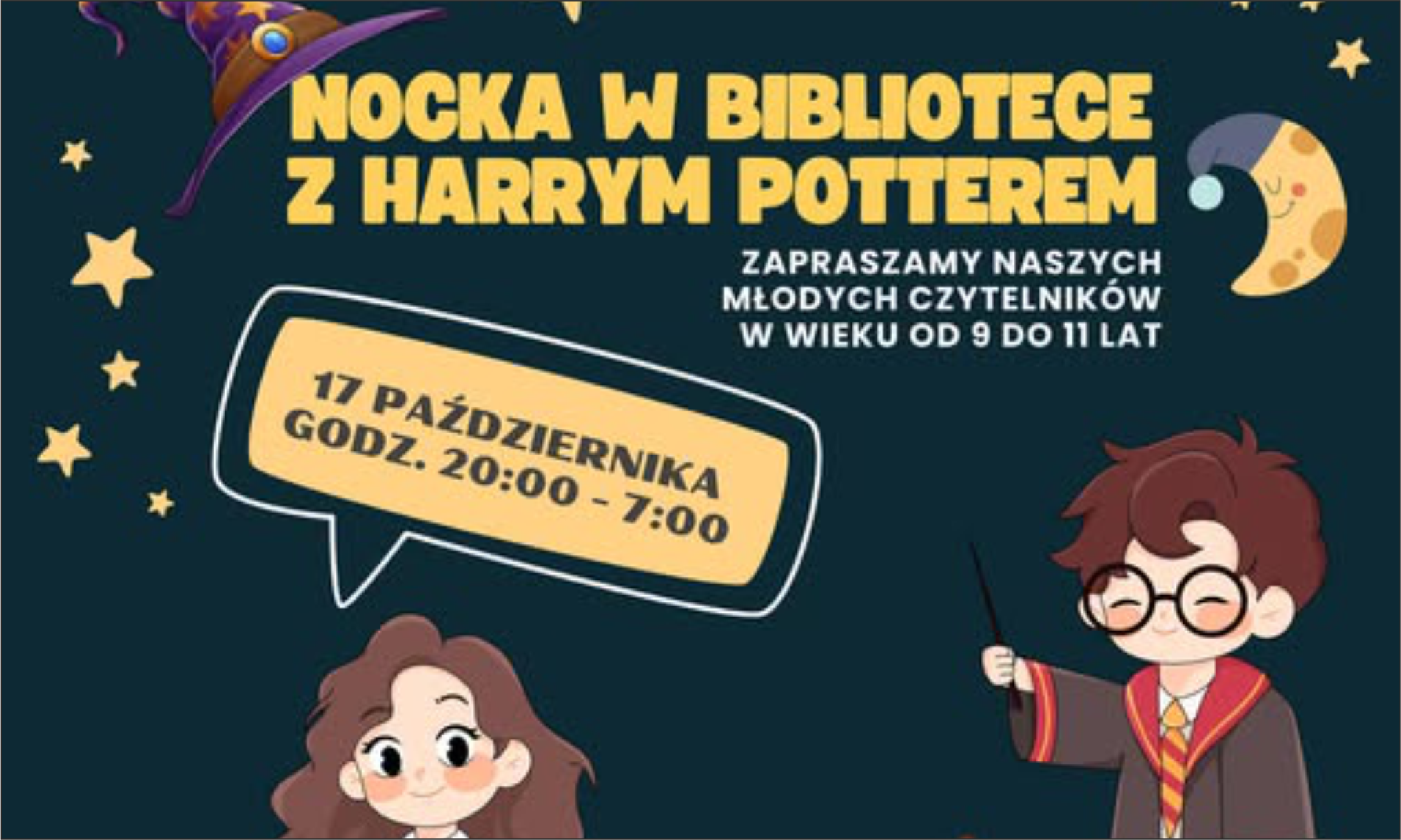 Uwaga, młodzi adepci sztuki zaklęć! Biblioteka miejska szykuje się do wielkiej przemiany — na jedną noc regały zamienią się w korytarze Hogwartu (no dobrze, w wersji goleniowskiej), a między półkami pojawią się tajemnicze wskazówki, zagadki i… popcorn.
