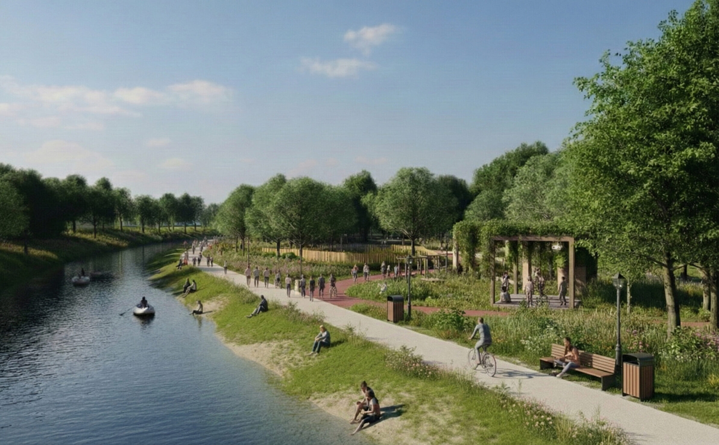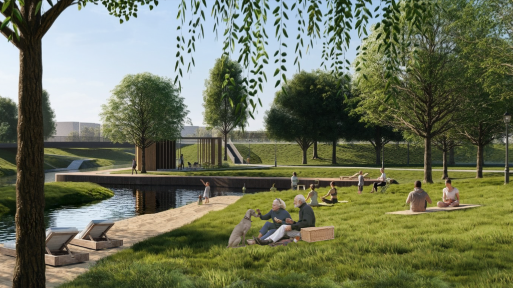 Tereny miałyby spełniać rolę, nie tylko rekreacyjno-sportową co widać na wizualizacjach, ale także komunikacyjną łącząc niejako przestrzeń między mostem na ulicy Szczecińskiej, a mostem na ulicy Kasprowicza. Co do zasady miałaby tam powstać wzdłuż Iny ścieżka pieszo-rowerowa, mała architektura, oświetlenie, miejsca do wypoczynku (niewielkie plaże). To miałby być pierwszy etap inwestycji podzielonej na kilka etapów w dłuższej wieloletniej perspektywie. W dalszym etapie planowane jest rozbudowanie promenady o co najmniej jeden mostek, łączący brzegi rzeki (lokalizacja wzdłuż prześwitu pieszego od strony ulicy Konopnickiej w kierunku rzeki, łącząc się po drugiej stronie z parkingiem przy amfiteatrze). Ten mostek wpisał by się świetnie w dodatkowym skomunikowaniu terenów kwartału ulic Sportowej, Reymonta, Prusa czy Konopnickiej z drugą stroną rzeki z terenami targowiska miejskiego, znacznie skracając drogę do tego fragmentu miasta.