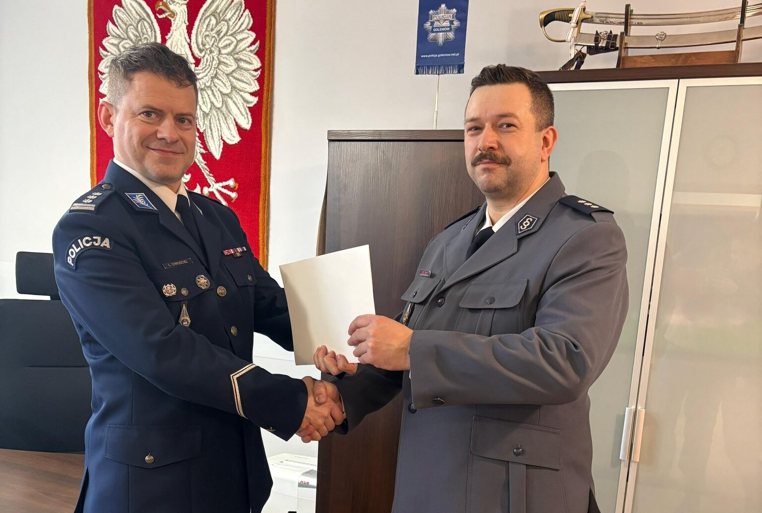 W Komendzie Powiatowej Policji w Goleniowie odbyła się uroczysta zbiórka związana ze zmianami kadrowymi w kierownictwie jednostki. W wydarzeniu uczestniczył I Zastępca Komendanta Wojewódzkiego Policji w Szczecinie insp. Robert Sielski.