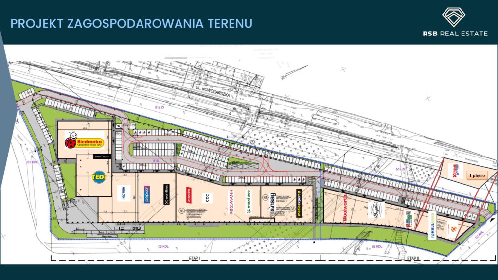 Głównym najemcą spożywczym będzie Biedronka. Na końcu artykułu w dostępnych wizualizacjach możecie Państwo zobaczyć sklepy jakich marek będą dostępne w centrum handlowym, wśród nich są Action, Sinsay, Wirldbox, Pepco, Rossmann, Media Expert, Tedi czy Martes Sport. Siatkę najemców uzupełni nowoczesna siłownia oraz inne ogólnopolskie brandy z segmentu convenience i usług.