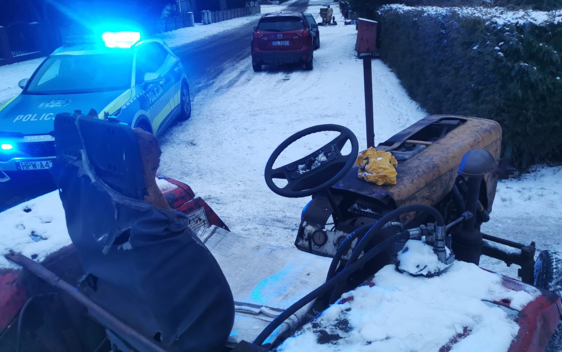 Niektórzy liczą barany przed snem, inni… promile. Kierujący ciągnikiem w powiecie goleniowskim postawił na tę drugą opcję i uzbierał blisko 3 promile alkoholu w organizmie. Jakby tego było mało, obowiązywał go zakaz prowadzenia pojazdów, a sam ciągnik z przyczepą istniał raczej „umownie” – bez rejestracji, OC i numeru VIN ❌