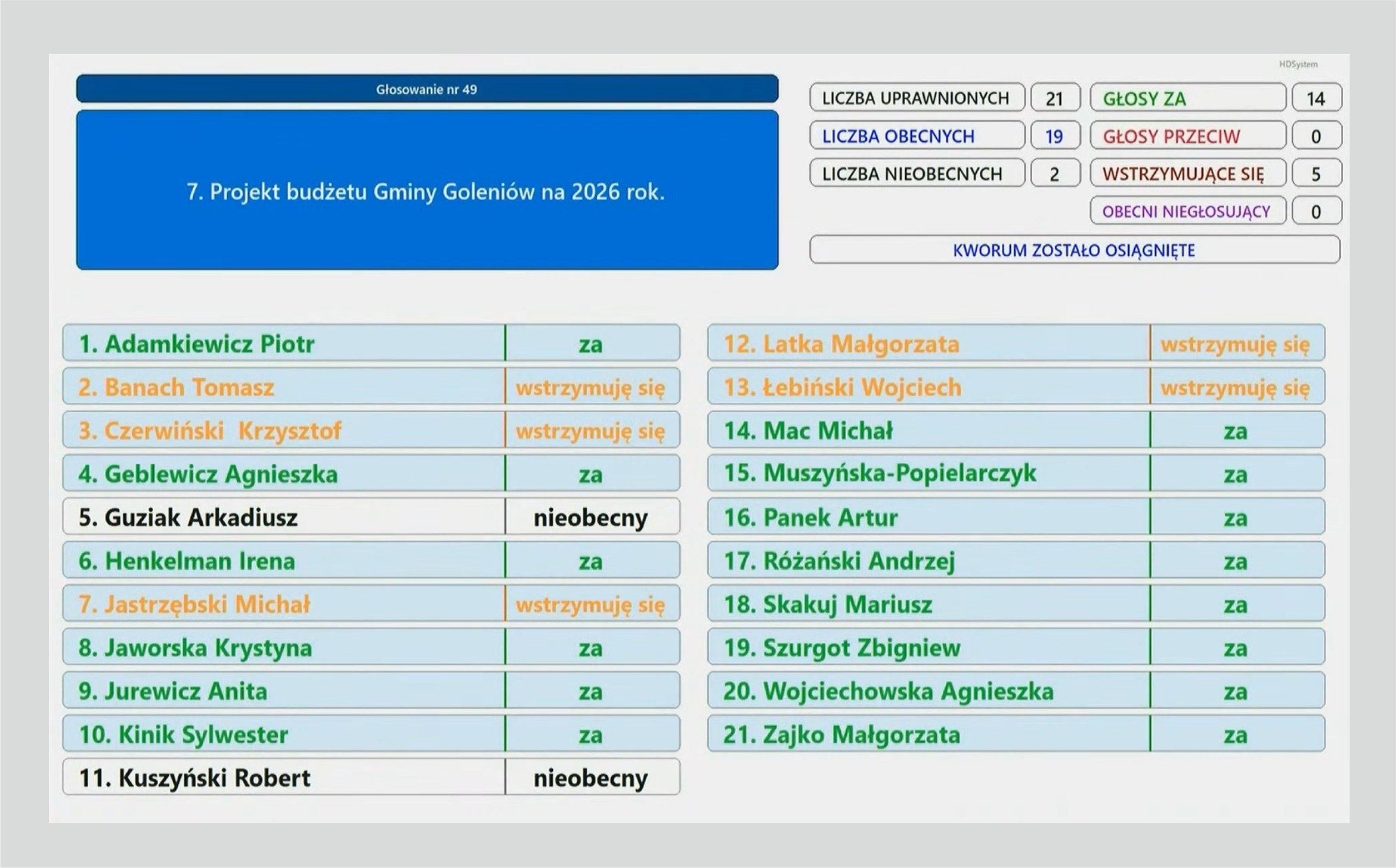 Projekt znany już jest od mniej więcej miesiąca. W zasadzie z niewielkimi zmianami i przesunięciami środków został przyjęty 14 głosami za i 5 wstrzymujących.