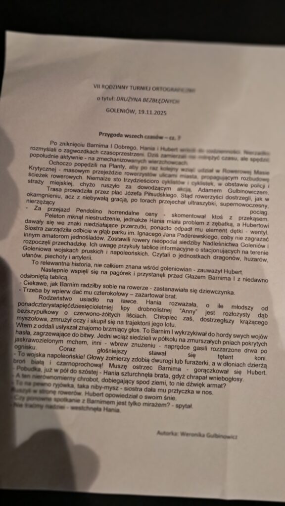 To był wieczór pełen ortograficznych emocji. Wczoraj 19 listopada 2025 już po raz siódmy wybrzmiało turniejowe dyktando, pełne językowych zagwozdek i trudnych zwrotów, które dla wyposażonych w niewielkie umiejętności pisania poprawną polszczyzną mogły być wyzwaniem nie lada.