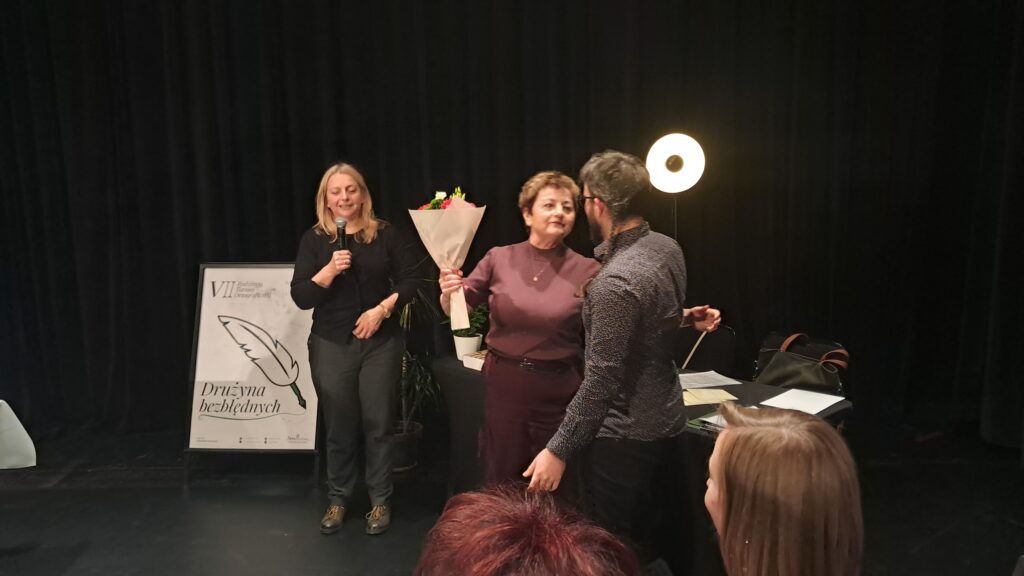 Bezapelacyjnie najlepiej napisała – bardzo trudne dyktando – drużyna w składzie: Marta Pędziwiatr, Jacek Pędziwiatr, Renata Jarczewska. Dzierżyć będą zatem palmę pierwszeństwa i tytuł „Drużyny Bezbłędnych” przez kolejny rok. Nie ustrzegli się błędów zupełnie, ale popełnili ich zaledwie kilka. Serdecznie gratulujemy im sukcesu!