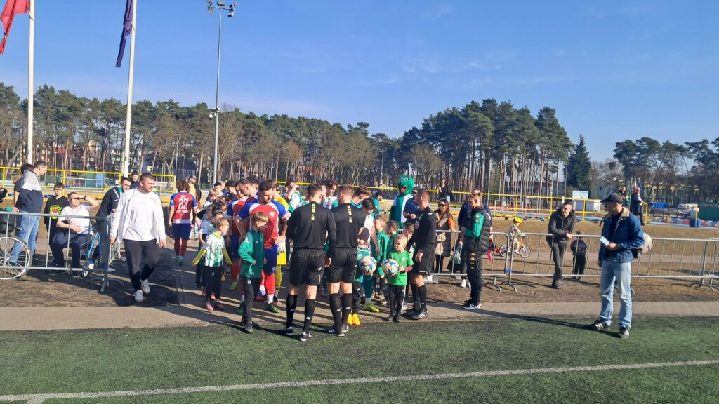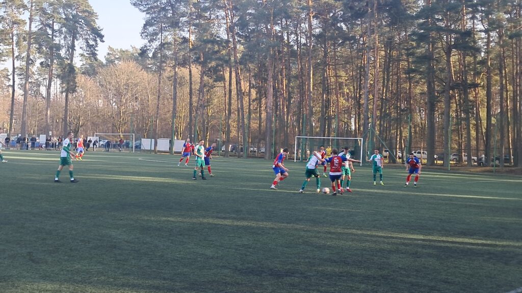 Początek meczu był dość spokojny, drużyny badały się na środku pola. Ale już w 9 minucie zawodnik gości odbił piłkę ręką we własnym polu karnym. Sędzia bez wahania pokazał na wapno. Pięknym strzałem z karnego popisał się Damian Banachewicz, trafiając w same „widły” bramki. Im dalej w tej części gry było jednak gorzej, w okolicach 17-18 minuty goście mieli 2 dobre sytuacje. Jedną wybronił znakomicie się dzisiaj spisujący w naszej bramce Guzielak, w drugiej futbolówka poszybowała tuż nad poprzeczką. Gra toczyła się głównie w środku pola, ale to przyjezdni mieli optyczną przewagę. Jedna z akcji Iny również mogła zakończyć się bramką. Po prawej pięknie pociągnął Banachewicz i po kombinacji 3 podań piłka trafiła pod nogi Blatkiewicza, jednak ten nie zdołał z bliska oddać soczystego strzału, piłka wpadła w ręce bramkarza gości. Pod koniec połowy Guzielak znowu się popisał i można powiedzieć świetną paradą wybronił strzał zawodnika Gryfa. Powinien być remis, a tak prowadzimy 1 : 0.
